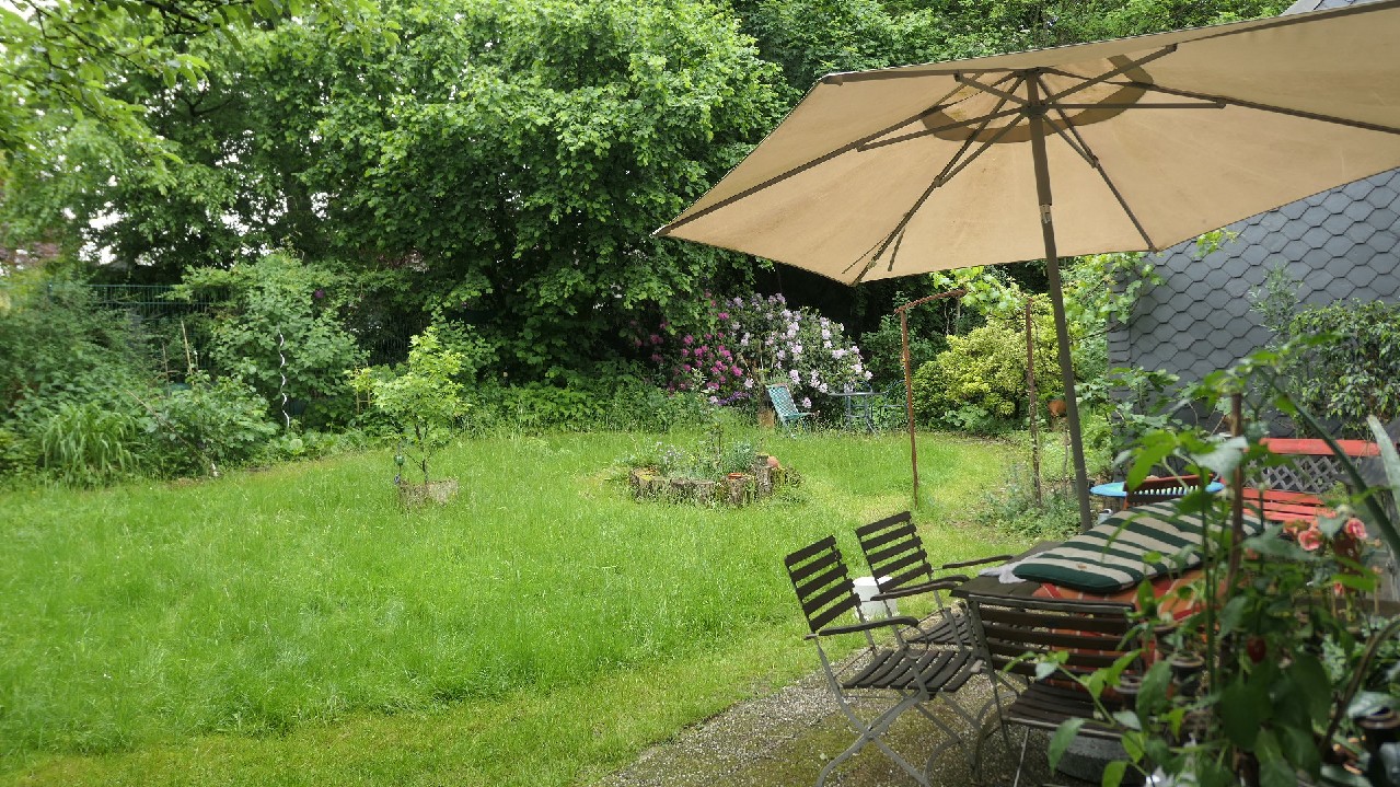 Das hintere Gartengrundstück ist nahezu eben.