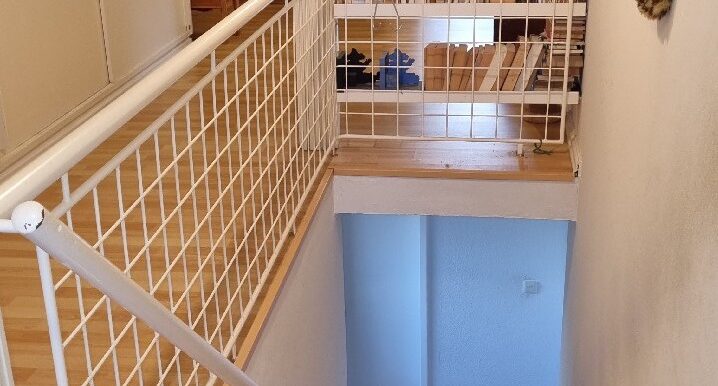 In dem Wohnraum wurde überwiegend Parkett verlegt. Im Obergeschoss befinden sich Laminatböden.
