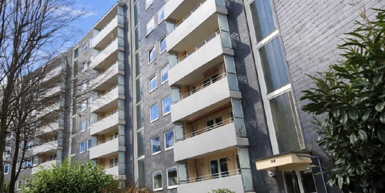 Die angebotene Eigentumswohnung befindet sich im Wuppertaler Stadtteil Barmen, im Ortsteil Oberbarmen. Die Umgebung ist durch eine aufgelockerte Wohnbebauung und zahlreiche Grünflächen zwischen den Gebäuden geprägt.