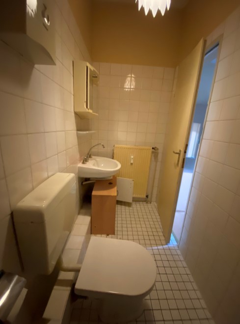 Das innenliegende Badezimmer ist mit einer Eck-Dusche, einem Waschtisch, einem WC, sowie einer Heizung und einem Durchlauferhitzer ausgestattet.