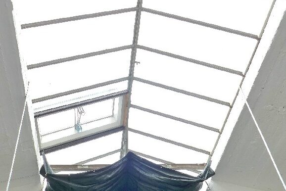 Die Verglasung in den Büroräumlichekten besteht aus isolierverglasten Kunsstofffenstern.
